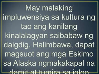 Heograpiya at mga Sinaunang Kabihasnan sa Daigdig PANIMULA Isa ang HEOGRAPIYA sa mga salik na nakaaapekto sa daloy ng kasaysayan.