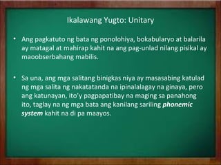 Yunit-2 - Ang pagtuturo ng kahit anumang wika ay hindi nag-iiba kung ang ating paguusapan. Rasyunale ng Pag-aaral Napakahalaga ng papel na ginagampanan ng wika noon at maging ngayon sa kasalukuyan. Pinili ng mananaliksik ang Camarines Sur Polytechnic Colleges bilang lugar ng pag-aaral at gumamit ng 25 guro-kalahok mula sa ibat ibang departamento ng Kolehiyo.