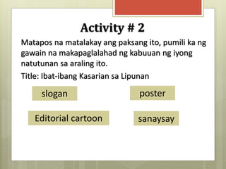 Kasarian sa Ibat Ibang Lipunan - Part 2 AP10 STUDY. Papel ng kasarian Mga Tao at Lipunan - Mimir Diksyunaryo papel ng kasarian english gender role Mga Tao at Lipunan buod ang tapat na pagpapahayag ng mga saloobin na nagpapahiwatig sa iba ng antas ng iyong pagkalubha o femaleness Ang papel ng iyong kasarian ay ang pampublikong pagpapahayag ng iyong pagkakakilanlang pangkasarian Pangkalahatang-ideya. Epekto ng salitang balbal sa pag-aaral ng mga piling mag aaral sa ikalabing dalawang baitang sa strand na abm panuruang taong 2018 sy.