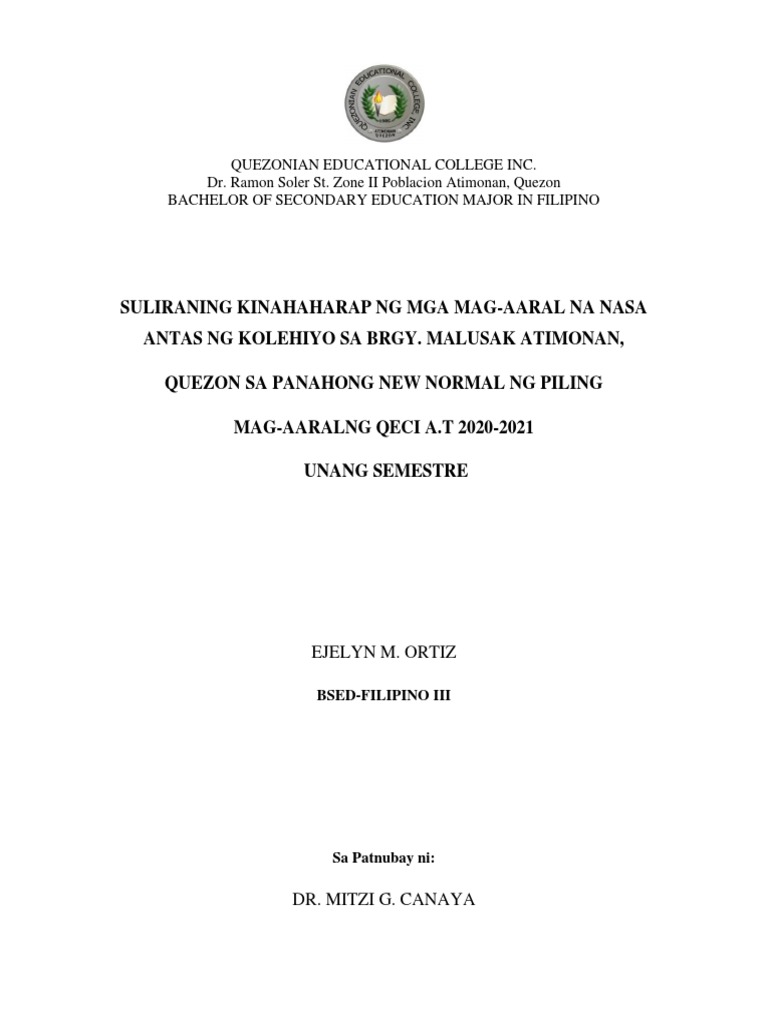 Suliraning Kinahaharap Ng Mga Mag Aaral Na Nasa Antas Ng Kolehiyo Sa Panahong New Normal Ejel Pdf