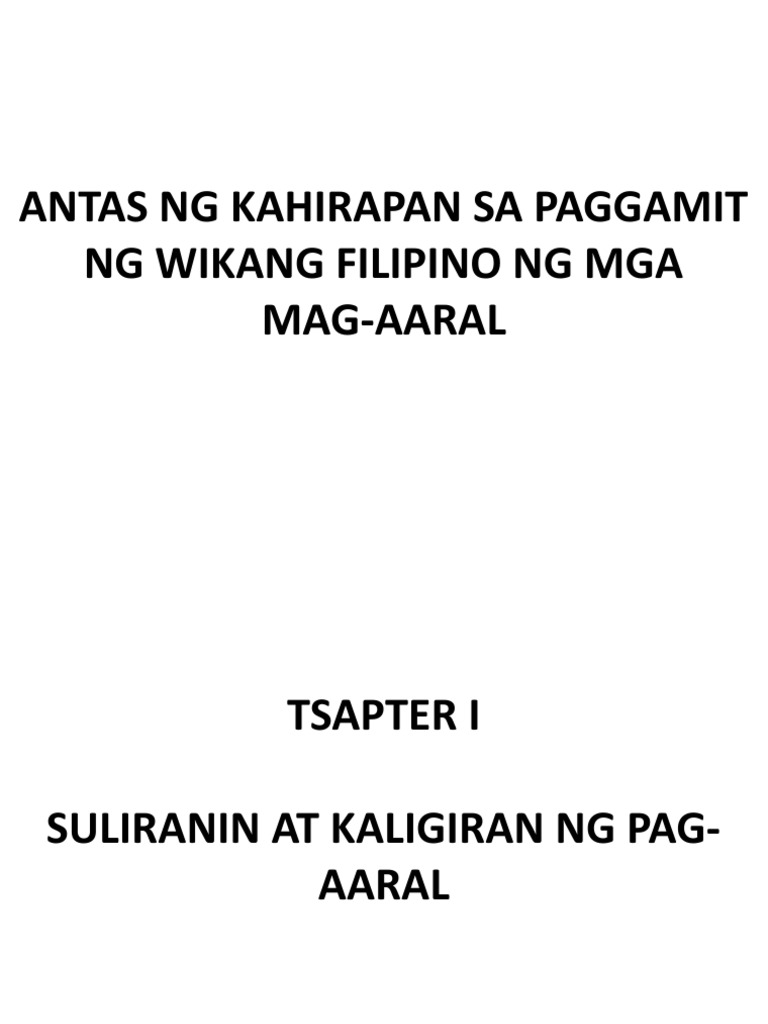Antas Ng Kahirapan Sa Paggamit Ng Wikang Filipino Pdf