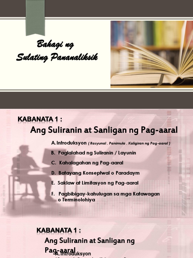 Bukod dito ang bahaging ito ang nagbibigay ng sentro o pokus sa sa isang pag-aaral. View KABANATA_I_SANDIGAN_SA_PAG-AARALdocx from STEM 123 at Pateros Technological College. Kahalagahan ng mga aklat.