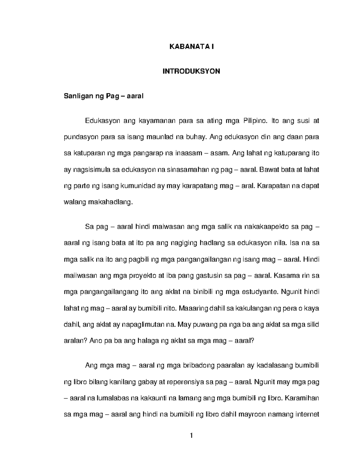 Sanligan ng pag aaral thesis. Kahalagahan pag-aaral sample thesis ng. A similar procedure is done on the other shoe. Paglalahad ng Suliranin Layunin C.