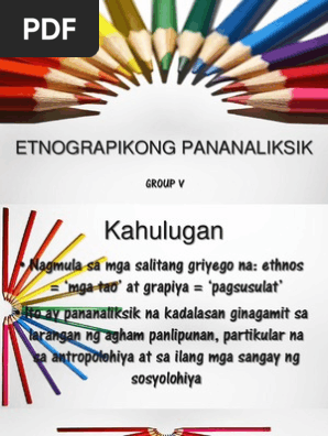 HERE are many translated example sentences containing ETNOGRAPIKONG PAG-AARAL NG JAPANESE AT AMERICAN PUBLIC SCHOOLS - tagalog-english translations and search engine for tagalog translations. Mga sagot kung sino ano kailan at paano nauugnay ang paksa ng pag-aaral. Para sa etnograpiya at iba pang uri ng pananaliksik sa larangan nagaganap ang mga panayam sa.