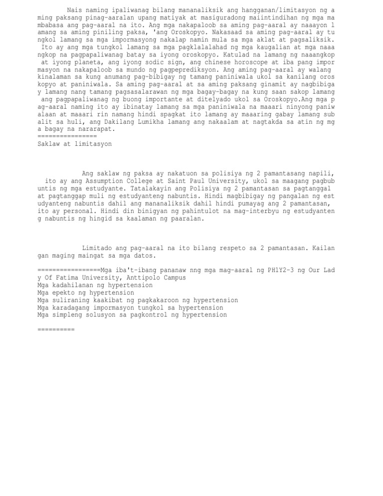 Doc Saklaw At Limitasyon Ng Pag Aaral Raffaga Garcia Academia Edu
