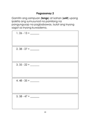 Edukasyon sa Pagpapakatao- Kagamitan ng Mag-aaral. Math 2 Q2-W2 B_ OCES_Calistondocx - 2 Grade 2 Mathematics Ikalawang Markahan Modyul 2b Subtracts mentally the following numbers without regrouping. Ang Dula Relatively Challenging 2-dots Ang Dula Relatively Easy 1-dot Ang Idolo ni Beatrice Ang mga Bayaning Babae ng Bansa Relatively Challenging 2-dots.