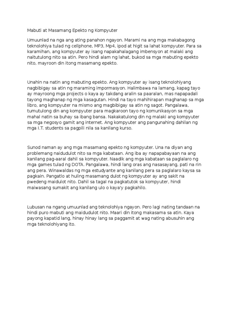 Mabuti At Masamang Epekto Ng Kompyuter Pdf