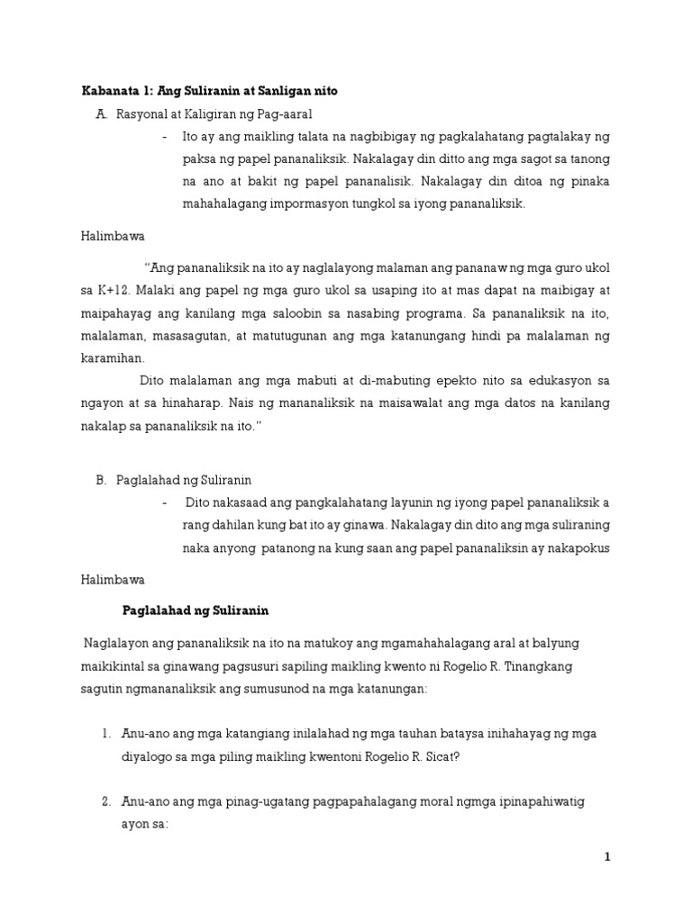 Bukod dito ang bahaging ito ang nagbibigay ng sentro o pokus sa sa isang pag-aaral. Ang Suliranin at Sanligan ng Pag-aaral A. KABANATA 1- ANG SULIRANIN AT KALIGIRAN NG PAG-AARAL.