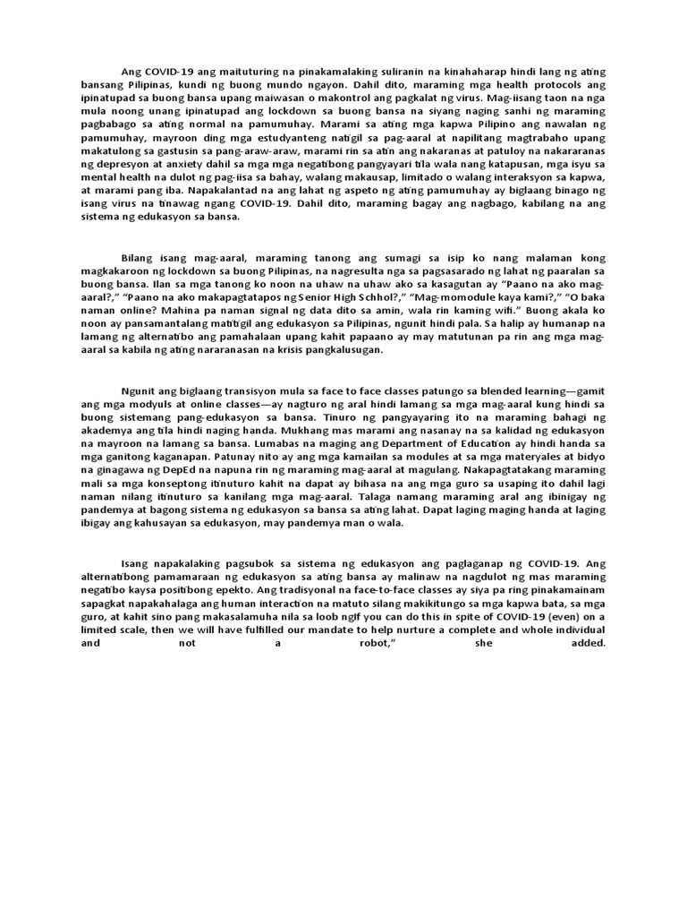 Talumpati Tungkol Sa Pagbabalik Ng Face To Face Pdf