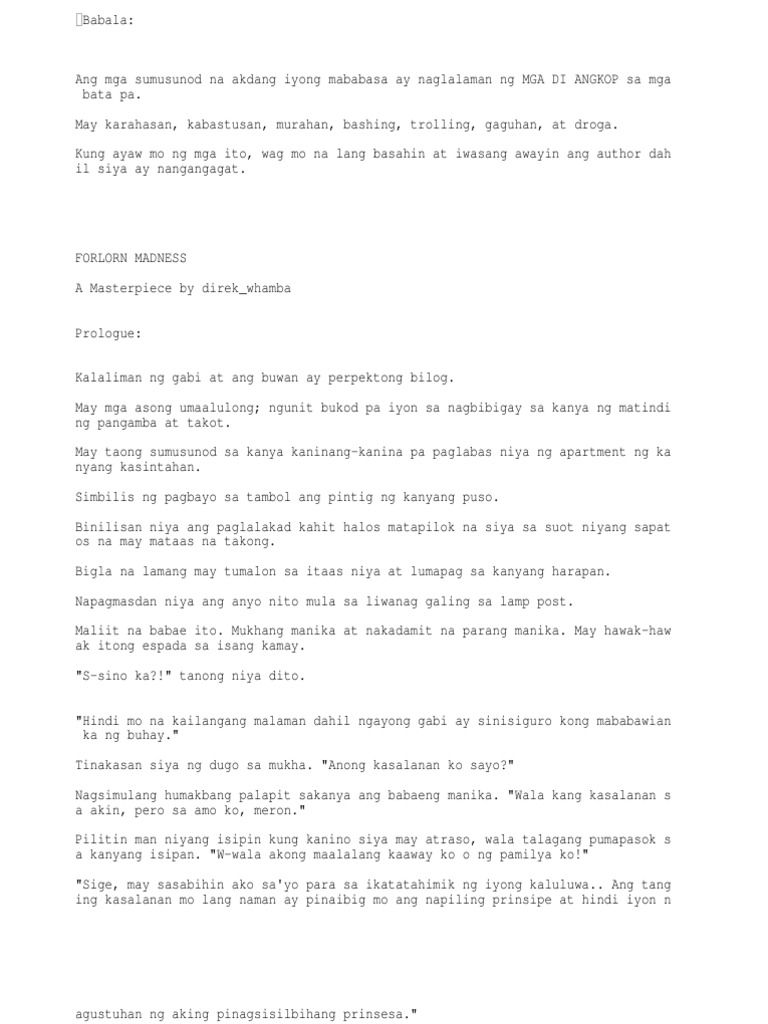 Wag pabayaan ang pag aaral in english. Wag mong hayaan na maging sayo ang ugali. Ang sa akin naman unang-una -- like si Kobe nasa States siya ngayon nakakuha ng scholarship sa magandang eskuwelahan -- sabi ko sa kanya ay huwag niyang pabayaan ang pag-aaral. Ang Mutya Ng Section E Part Two The Dark S.